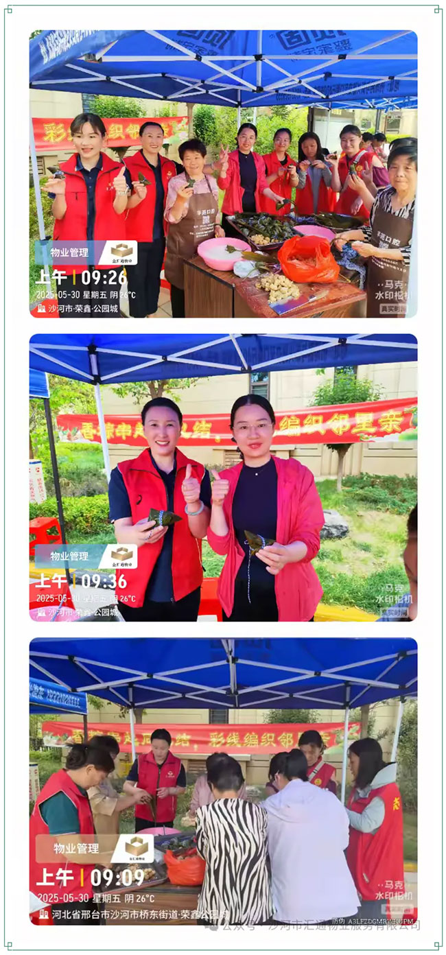 为弘扬传统文化,增进社区邻里情谊,汇通物业于2025年5月30日组织开展“粽叶飘香迎端午,幸福和谐邻里情”为主题的包粽子活动,活动覆盖沙河市荣鑫公园城、汇通雅居、汇通尚都等多个小区,吸引了众多业主热情参与。