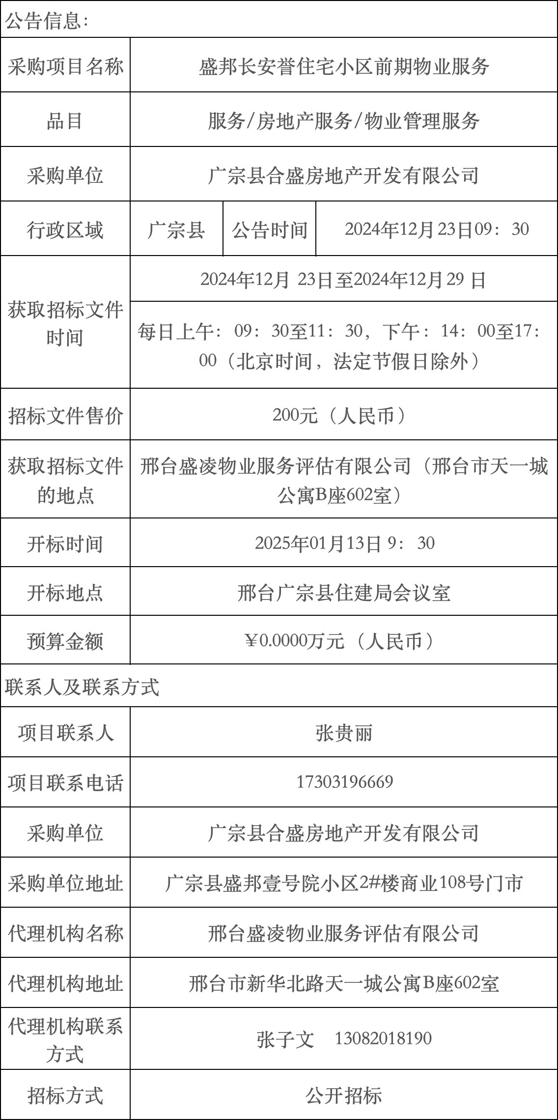 招标代理机构:邢台盛凌物业服务评估有限公司